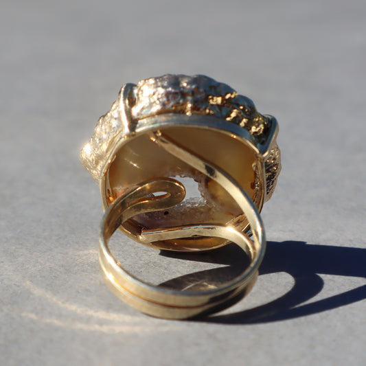 Light Agate and Druzy Ring
