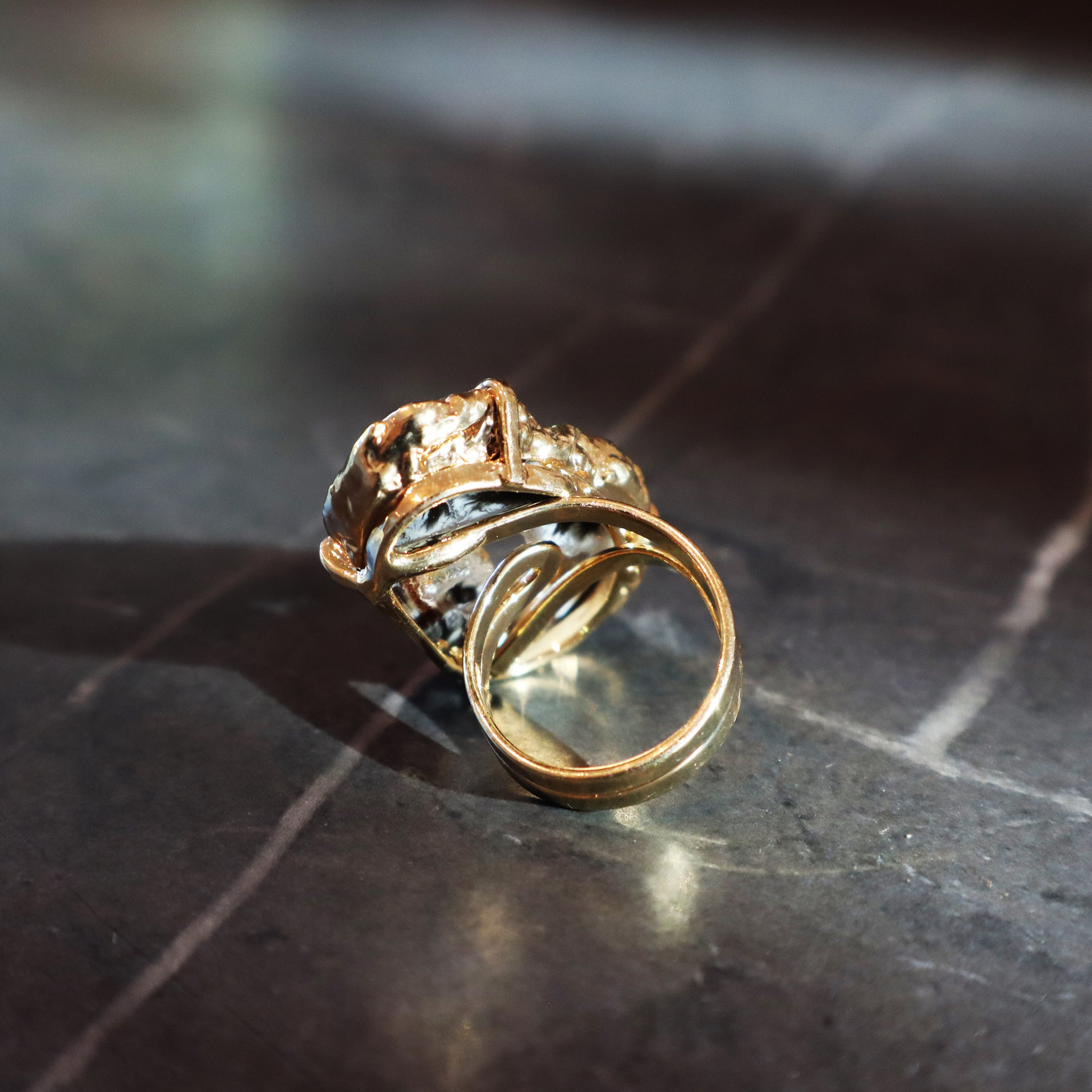 The ring's adjustable design ensures a perfect fit, while the luxurious gold-plated setting enhances the overall brilliance, making it a standout piece for any occasion. This one-of-a-kind creation not only embodies the beauty of nature but also serves as a wearable reminder of individuality and artistic craftsmanship. 1