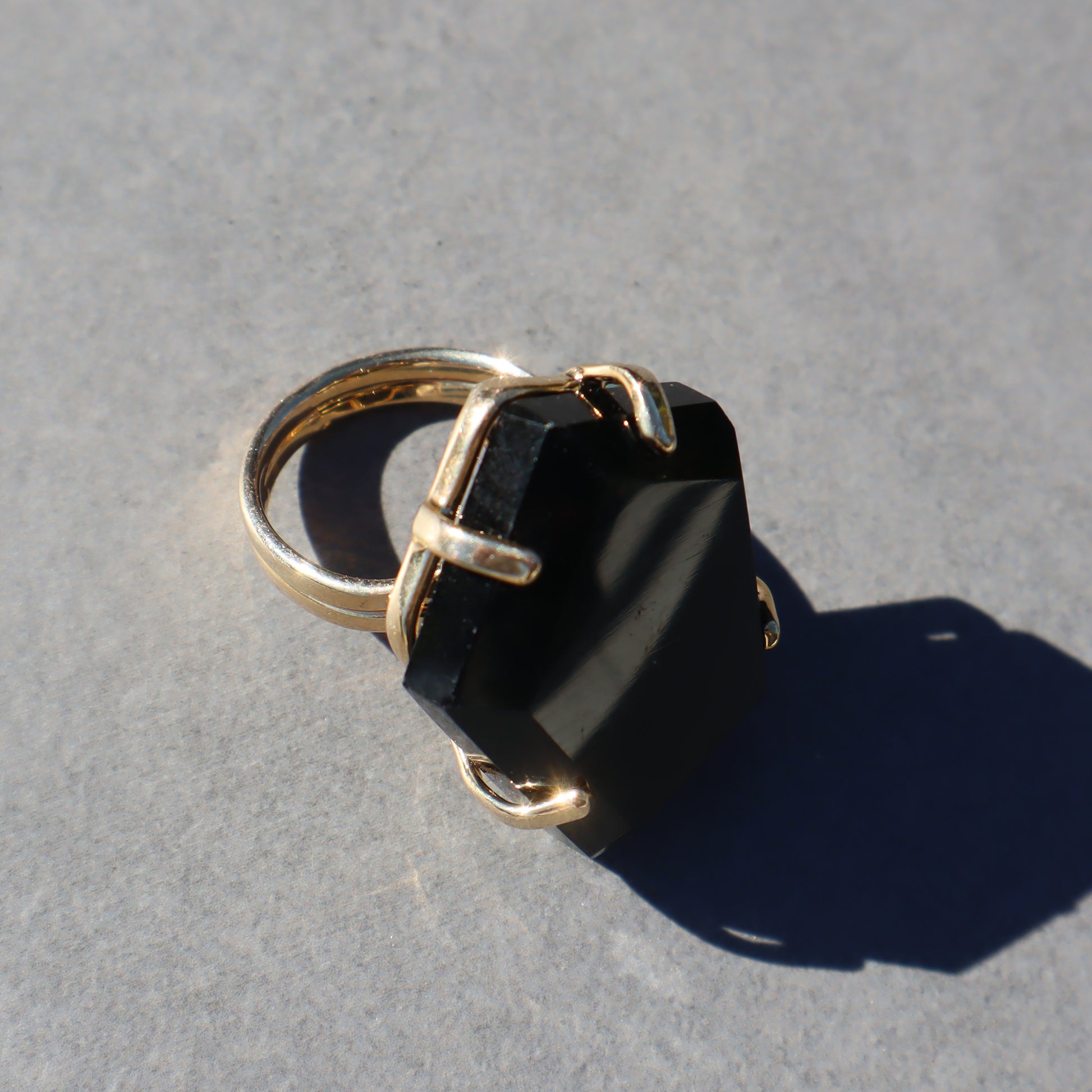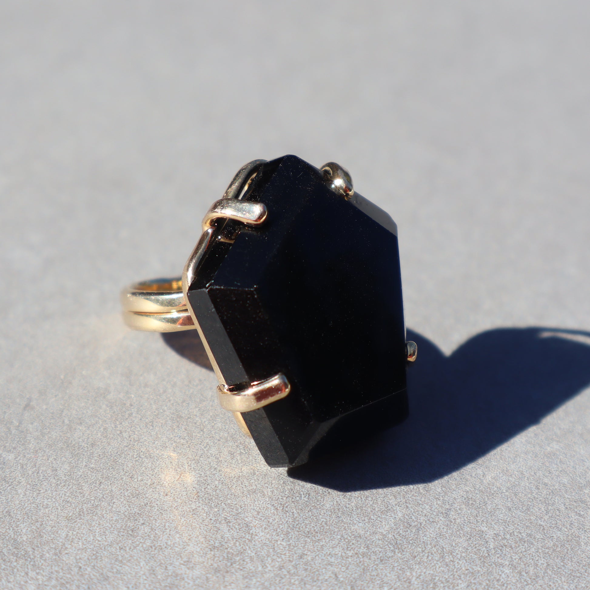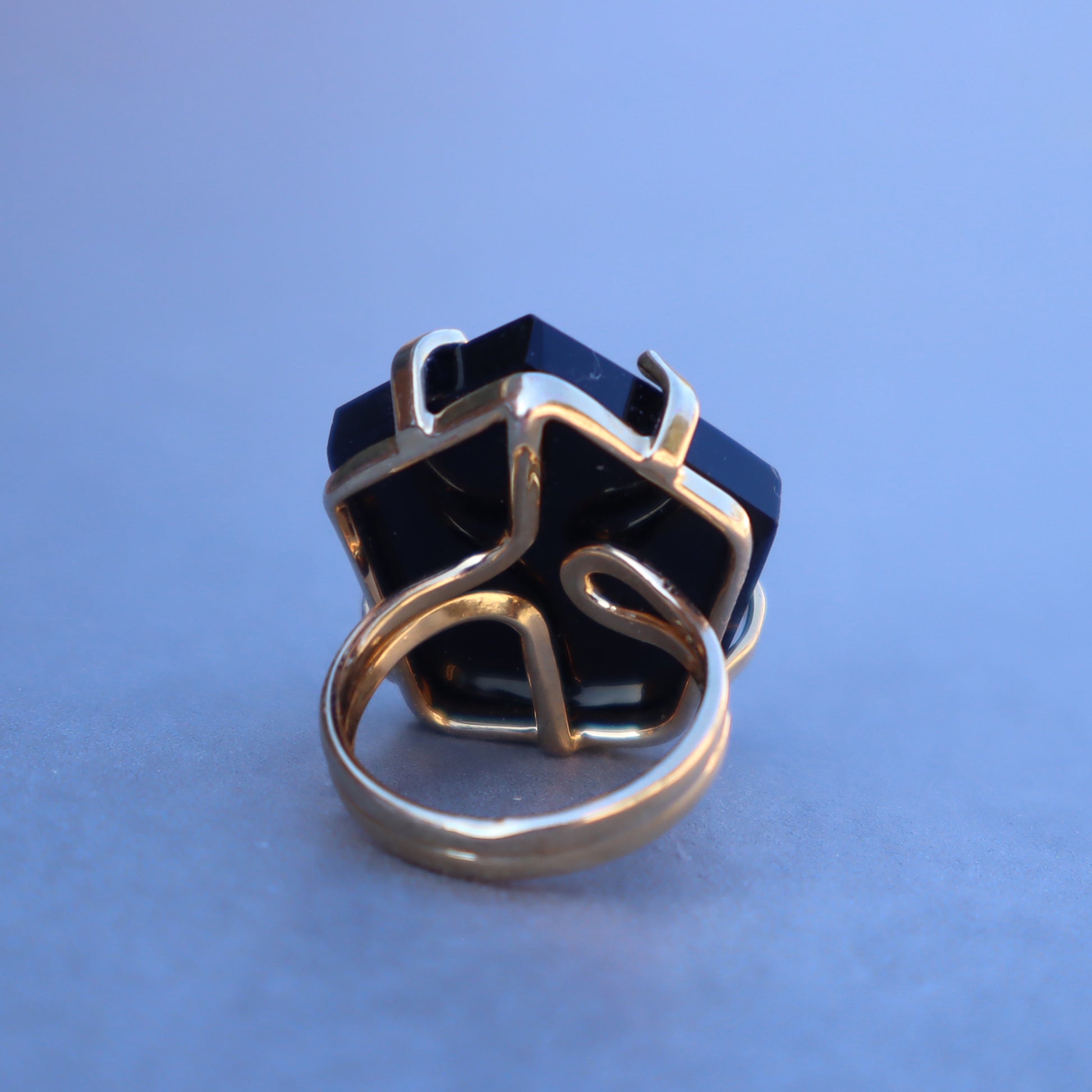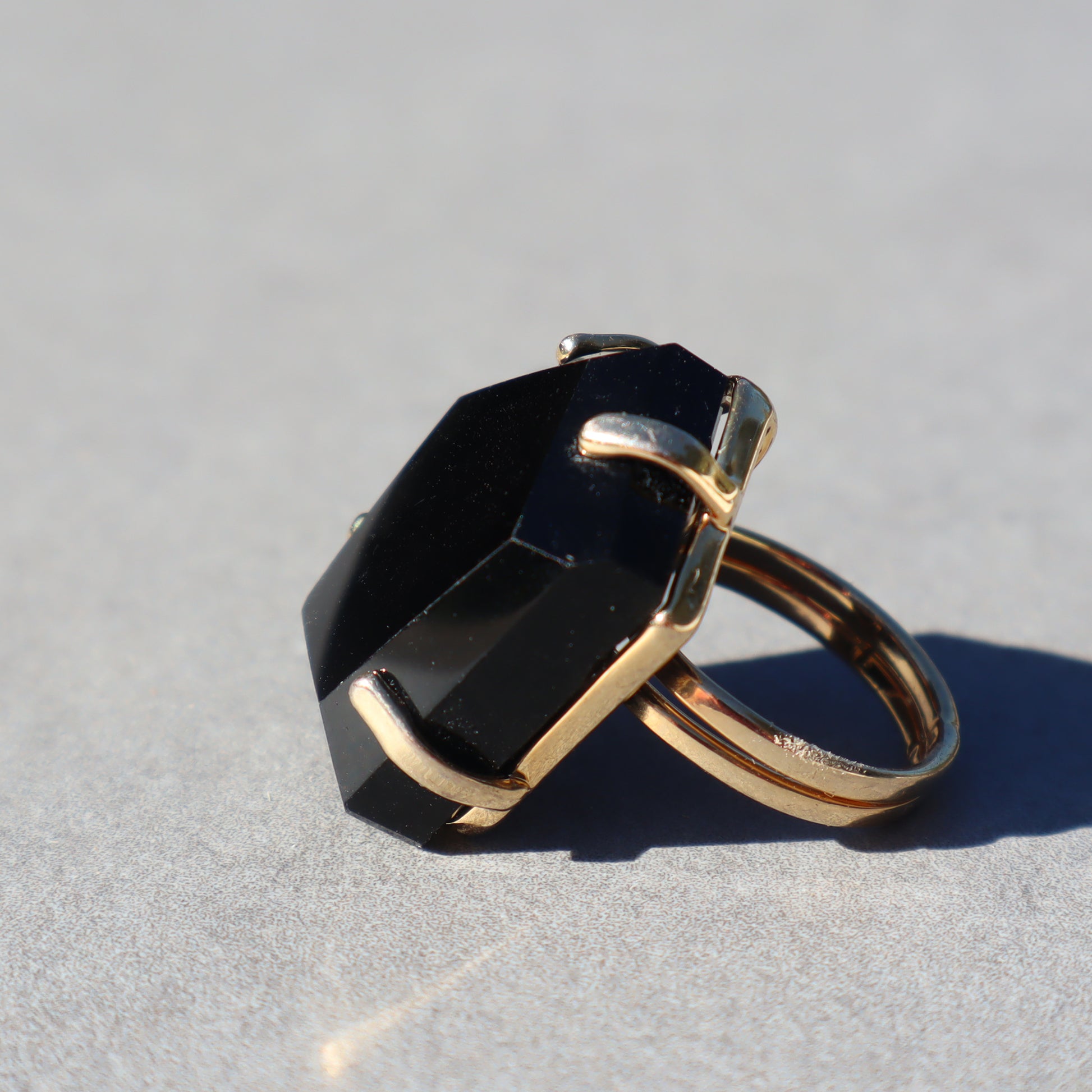 This exquisite handmade black onyx ring showcases the captivating beauty of polished onyx, its smooth, glossy surface shimmering with subtle hints of deep, rich undertones that evoke a sense of elegance and sophistication. This protective stone will absorb any negativity around you, keeping it from reaching you. It offers you a touch of sophistication and the natural essence of the stone's qualities.