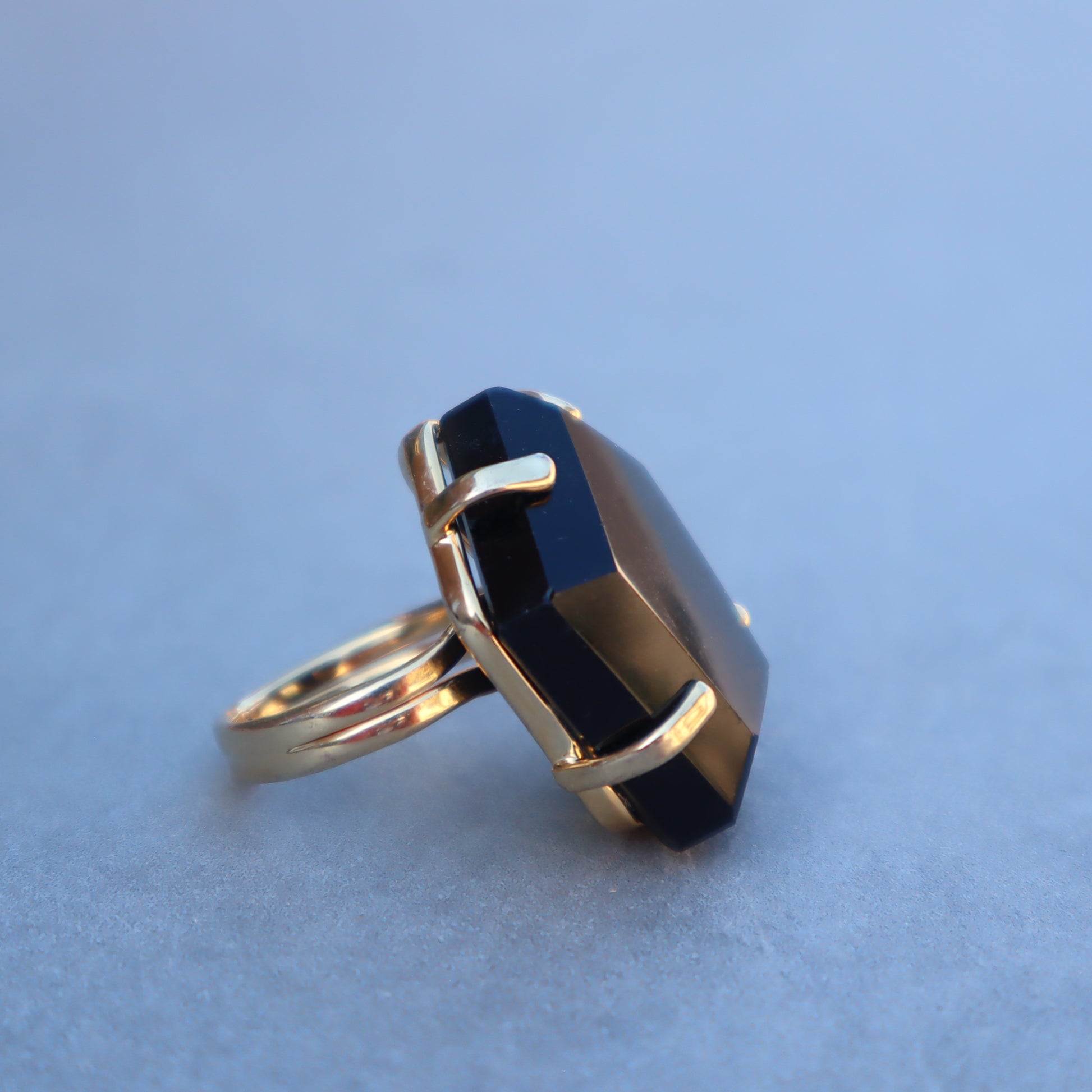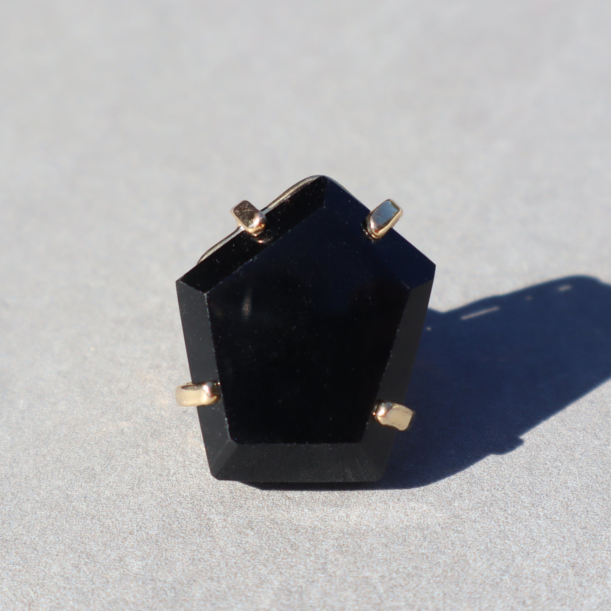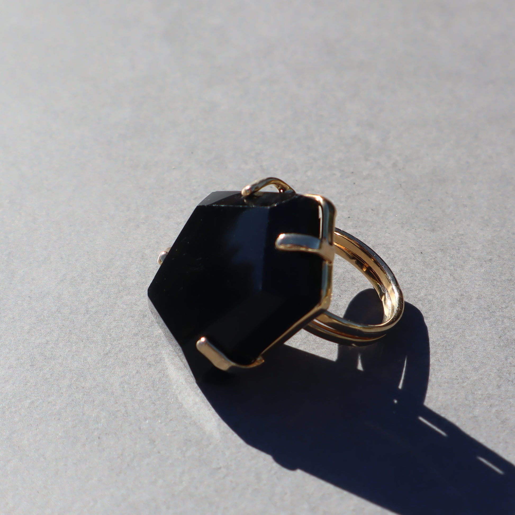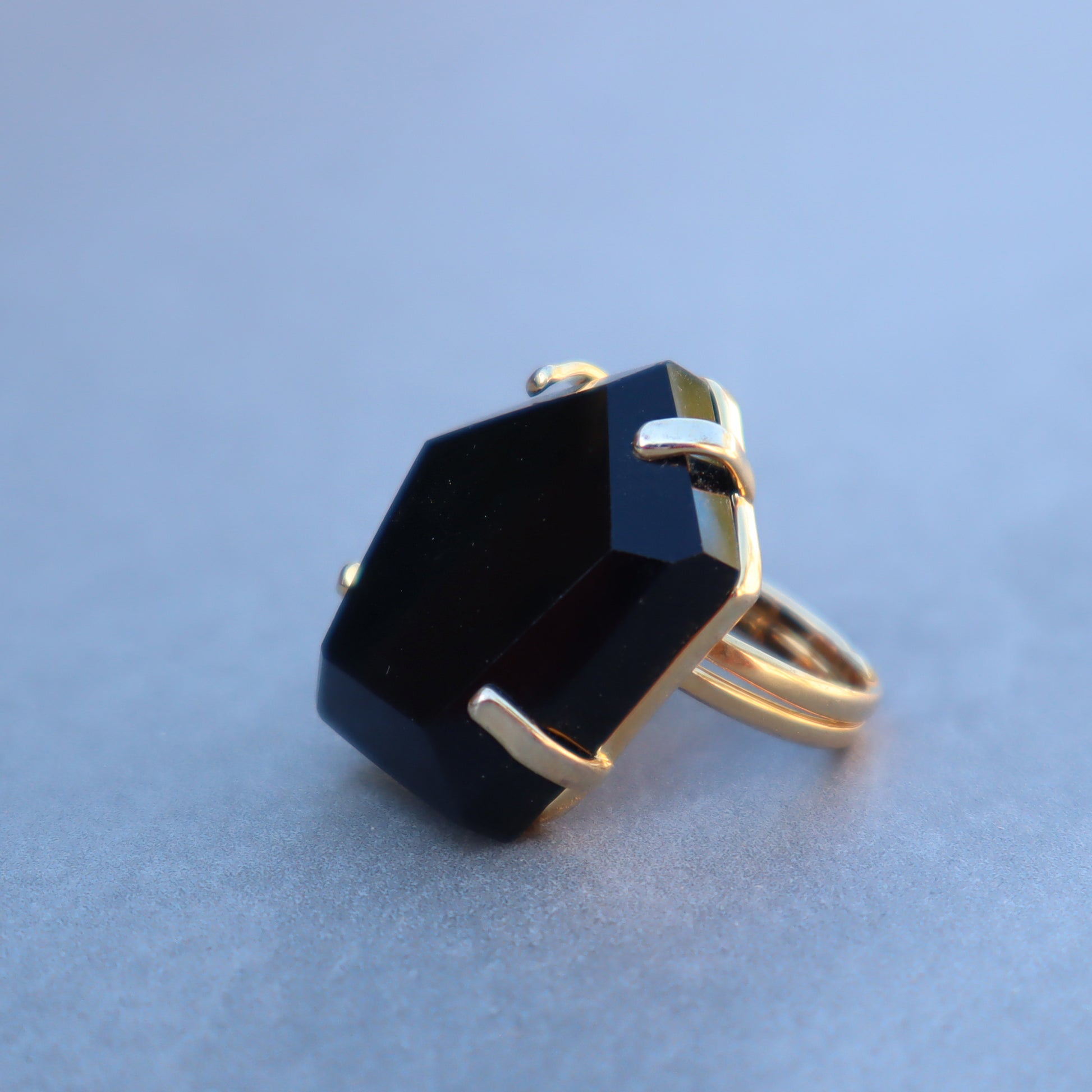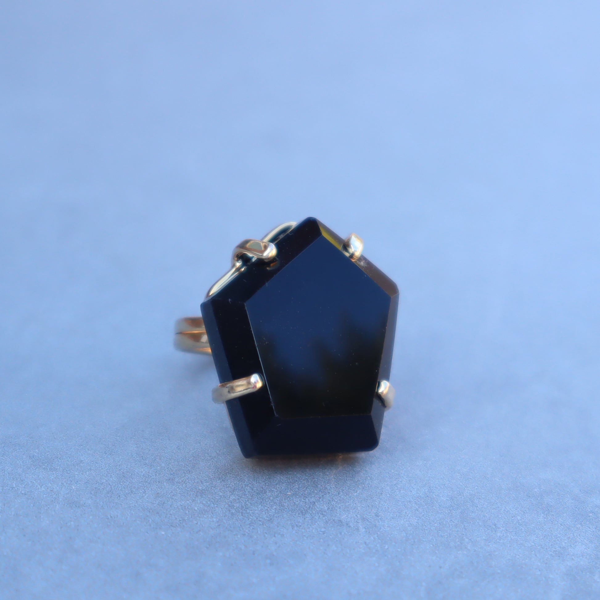 This exquisite handmade black onyx ring showcases the captivating beauty of polished onyx, its smooth, glossy surface shimmering with subtle hints of deep, rich undertones that evoke a sense of elegance and sophistication. This protective stone will absorb any negativity around you, keeping it from reaching you. It offers you a touch of sophistication and the natural essence of the stone's qualities.
