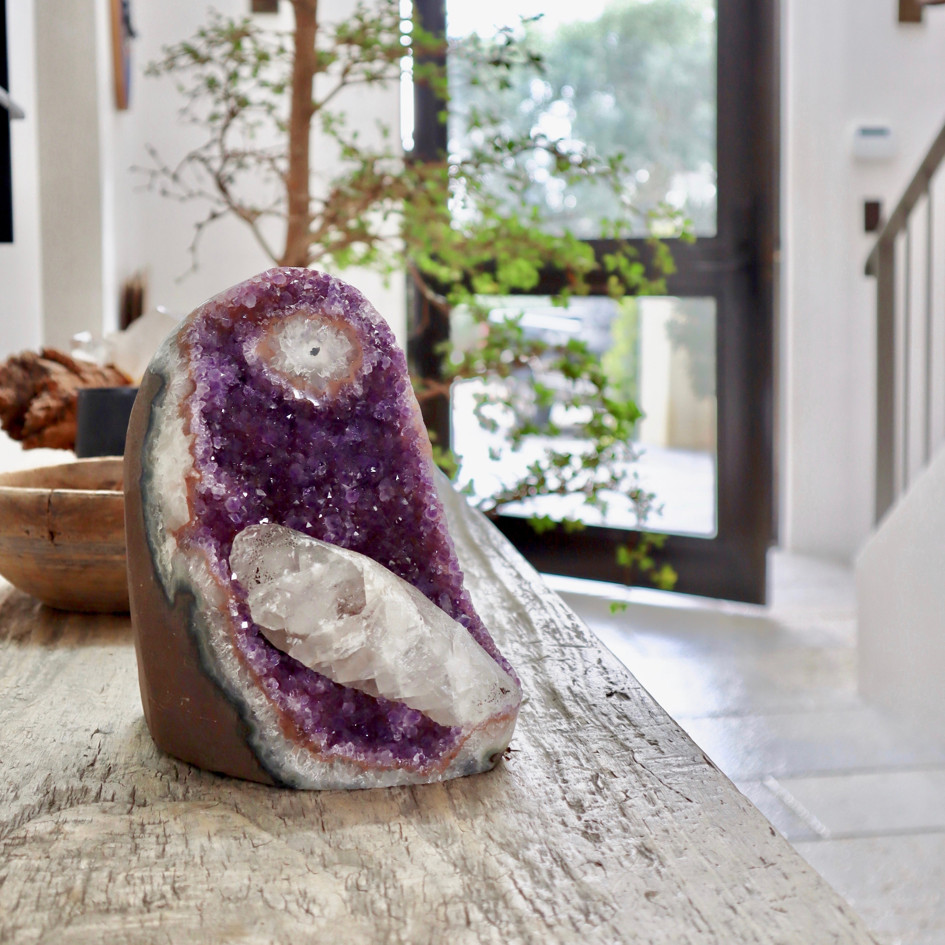 Extracting these formations demands skilled artisans who precisely slice them to reveal their intricate mineral layers. Geologically speaking, amethyst stalactites are a truly exceptional phenomenon. The interplay of magma, mineral-rich water, the passage of countless years, and the existence of underground caves within hydrothermal igneous volcanic rocks, alongside other contributing factors, harmonize to give rise to these marvels. Uruguay stands out as a source for these exceptional creations, offering the highest quality and elegance.